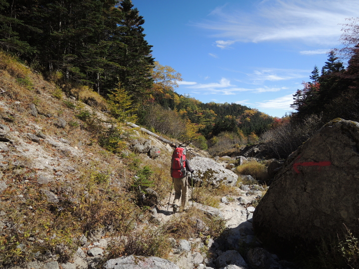 小屋からのコースタイムは4時間弱。最悪17時までに下山できればよいと、ゆっくり下った。