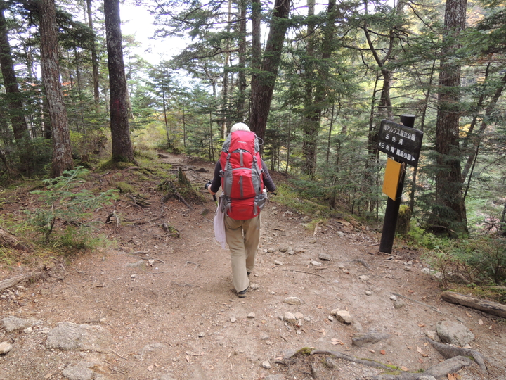 9:50 鳳凰小屋分岐点に到着。ここからは樹林帯の下りとなる。