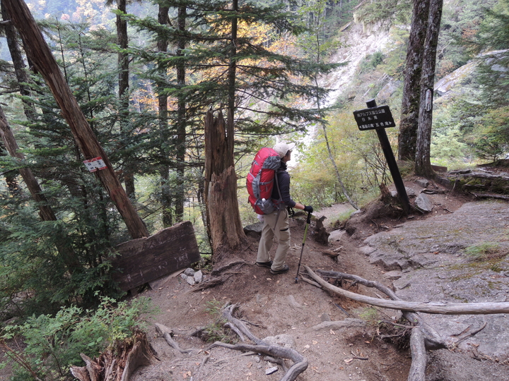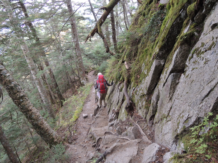 五色ノ滝からは急下降が続く。膝に負担をかけないように、ストックを最大限利用して下りた。