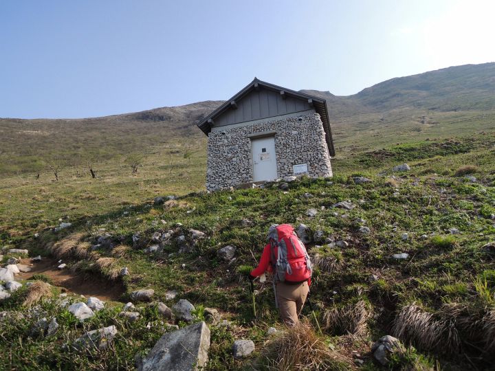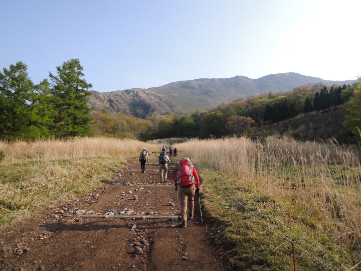 スキー場のゲレンデ跡をまっすぐ上ってゆく。筋肉痛などはなく、少し身体が重たい程度だった。ちなみに伊吹山スキー場は、さまざまな要因で2008年から休業、2010年にリフトが撤去されて現在は完全に閉鎖されている。