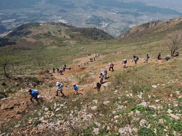 GW関西遠征3日目。3時過ぎに前夜車中泊した菩提寺PAを出て、上野登山口に5時到着。早朝から登山者の姿はちらほらあったが、大きな団体が現れる前だったので自分のペースを維持できた。コースに遮るものはほとんどなく、上るほどに見晴らしがよくなるので、最後まであまり疲れを感じることはなかった。広い山頂を歩き回っている間にどんどん登山者が増えて、下山する頃には上ってくる登山者の列に切れ目がないほどだったが、比較的広く登山道が整備されているので、すれ違いにそれほどストレスを感じなかった。3合目から先の下りはさすがに疲れが出て長く感じたが、終日天気に恵まれて、この日も素晴らしい山行となった。