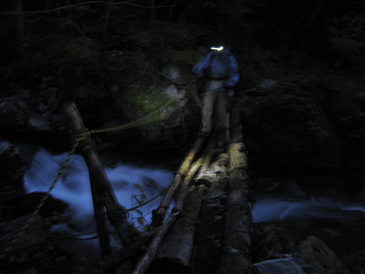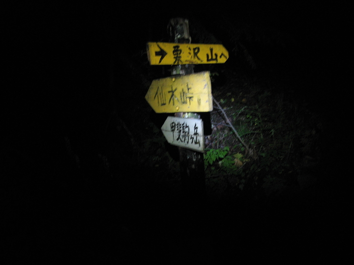 4:50 暗闇の中をスタート。最初に沢を渡る箇所が何度か続き、ルートがひじょうに分かりづらかった。