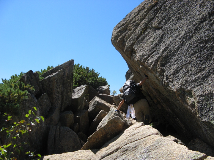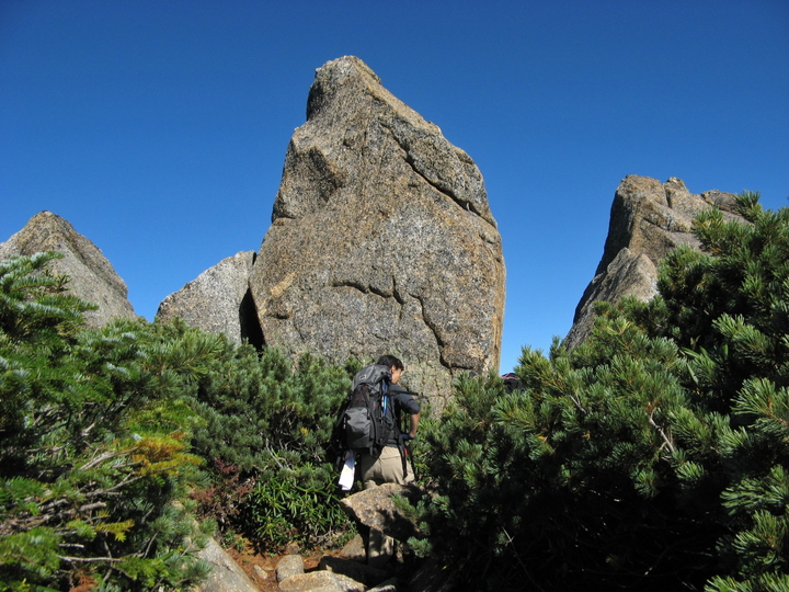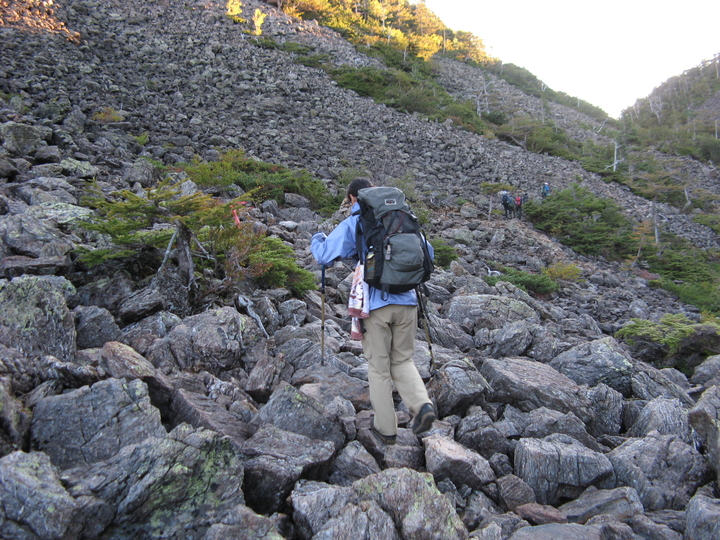 シラビソの樹林帯を抜けると、ゴーロと呼ばれる岩塊の斜面が現れる。