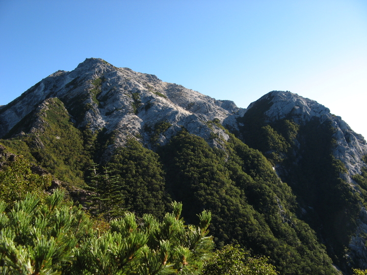 双児山付近から眺めた悪沢山とアサヨ峰。