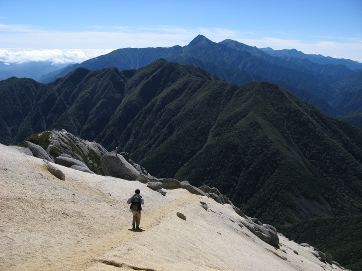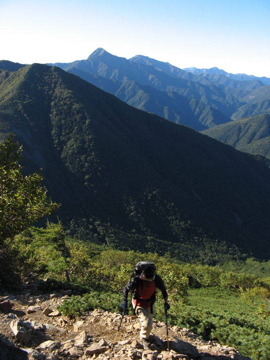 素晴らしい眺めの連続に気分は爽快。名だたる名峰を遠望しながら下った。