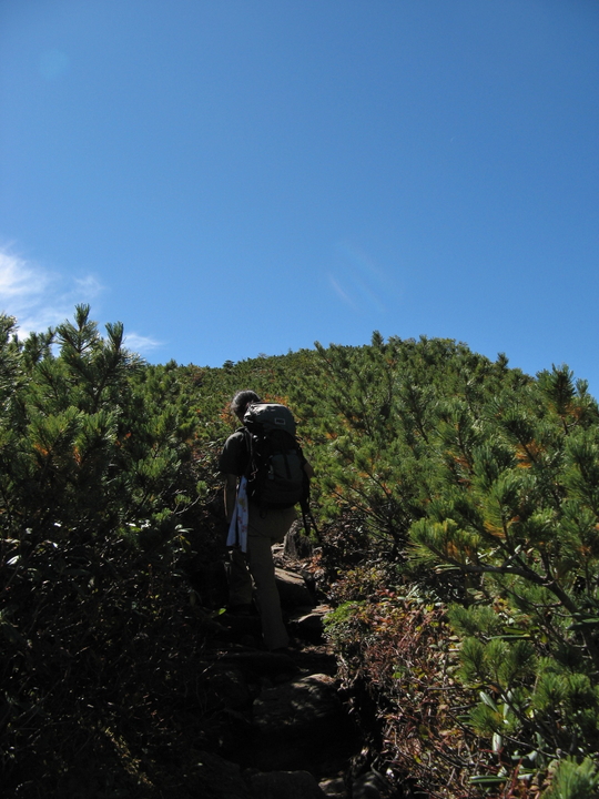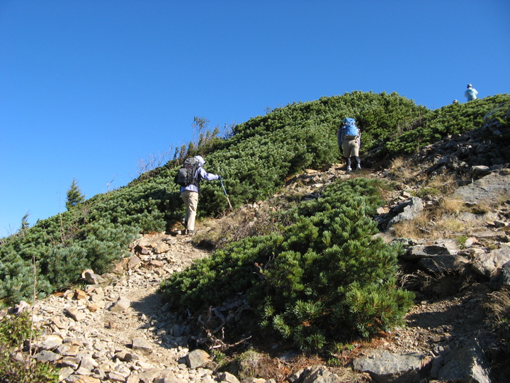 岩稜の直登コースではなく、南斜面の巻き道コースへ。