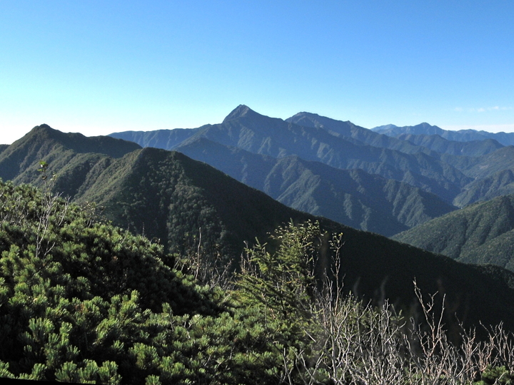 御嶽山の右奥には白山も見えていた。御嶽山の手前は大棚入山。