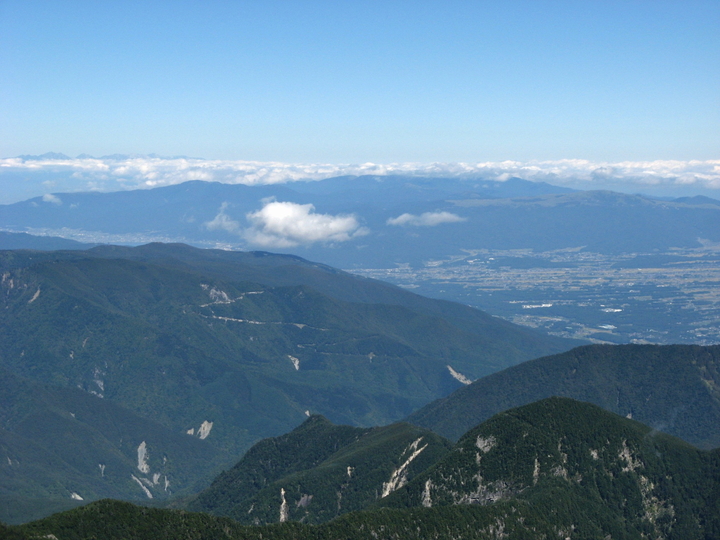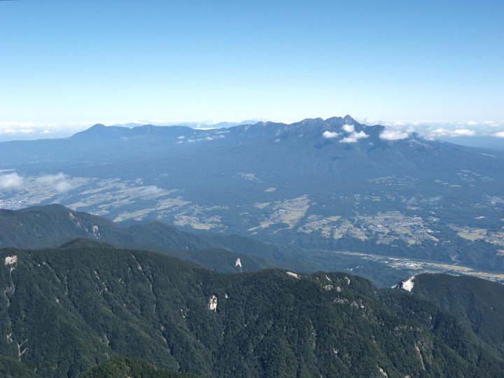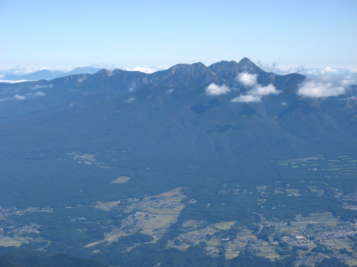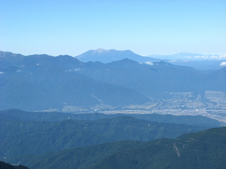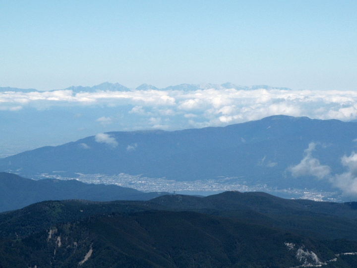 北北西側に見えるのは美ヶ原高原。右に車山高原(霧ヶ峰)も見える。