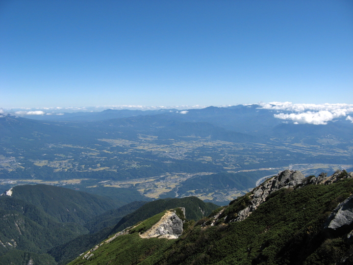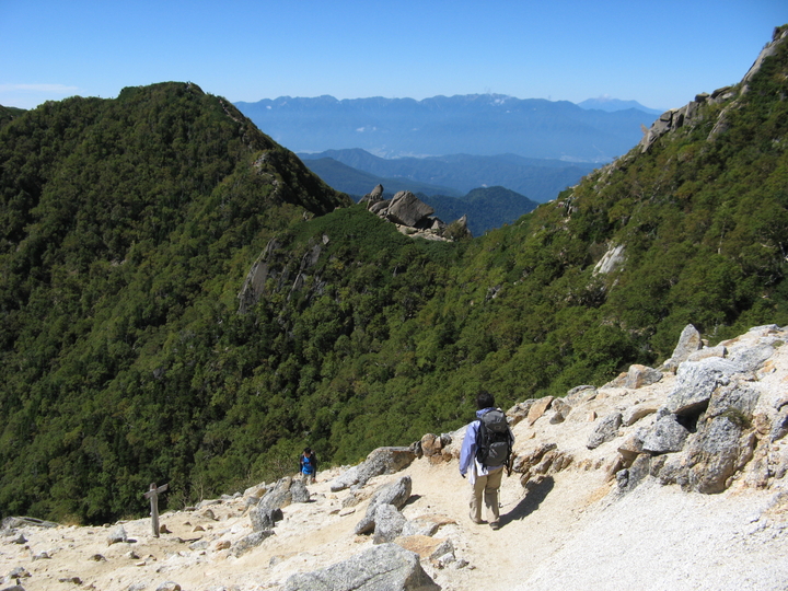 昼を過ぎてもガスが出る気配はなく、どこまでも見晴るかすことができた。5分ほど休憩してから下り始めた。