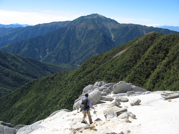 4時15分に目が覚めたので、すぐ準備をして5時前に歩き始めた。若干出遅れたと感じていたが、夜明け前の北沢沿いの山道は分かりづらく、先行していた団体の踏み跡を追えたのはよかった。前日と異なり、早朝から団体ハイカーが続々と登ってきて山は大賑わい。危険箇所では渋滞も発生したが、マナーのしっかりした団体ばかりなのであまり気にならなかった。心配していた身体の疲労も問題はなく、充分な睡眠をとれたからか、前日よりも体調はよいと感じた。山頂はまさに360度の大絶景。見えない山がないと思えるほど、すべての方角で遠望がきいた。大きな贈り物をもらったような、そんな気持ちにさせられる無上の眺めであった。仙水峠から上って双児山経由で下りるコースは変化に富んでおり、特に細かいガラスを固めたような花崗岩の白い斜面は印象的だった。唯一の難点は、コース上どこにも用を足せる場所がないことだろう。