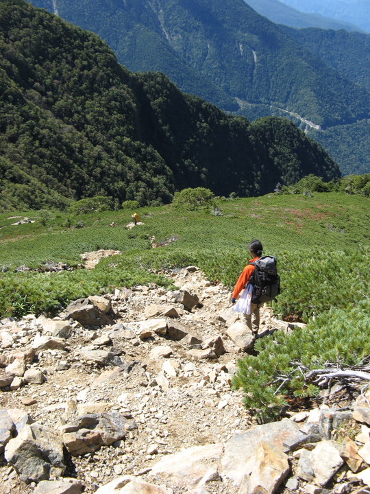 双児山から北沢峠までは600m以上の下りとなる。