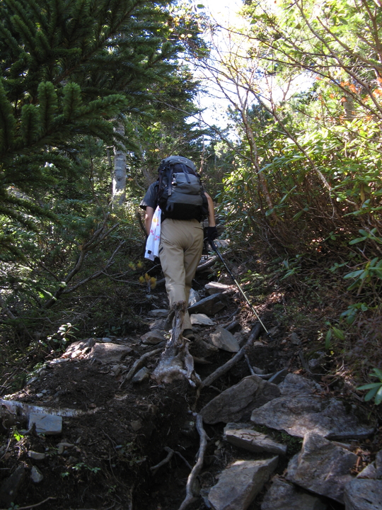 六方石を過ぎると、スムーズに歩けるようになった。前のハイカーに歩調を合わせて進んだ。