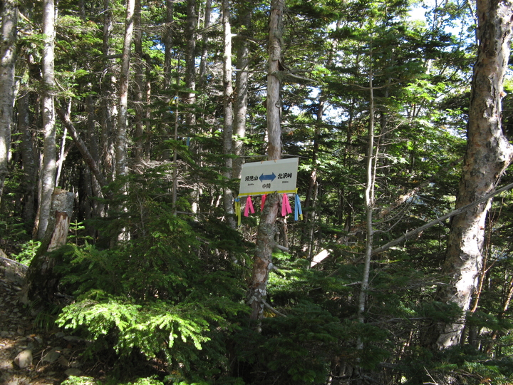 双児山と北沢峠の中間点に 13:30 到着。さすがに疲労が出てきた。