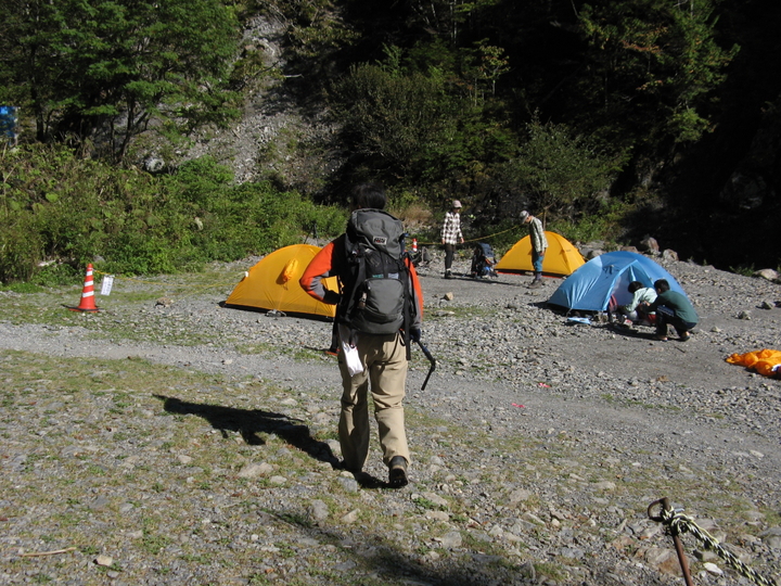 14:25 北沢駒仙小屋のテント場に到着。となりは撤収して次の人が設営を始めていた。