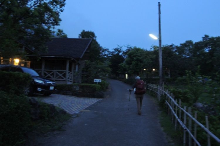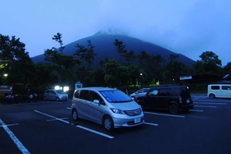 5:20 駐車場を出発。公園から見上げた開聞岳は、薩摩富士の名にふさわしい均整の取れた三角錐だった。管理人らしきおじさんに、暑いから水をたっぷり持って行くように声をかけられた。2人で4L位持っていたので、十分だと思っていたのだが…。