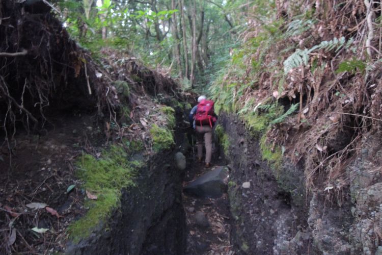 鬱蒼とした潅木帯を通る。やはり九州の山は、草木の生える密度が違う。