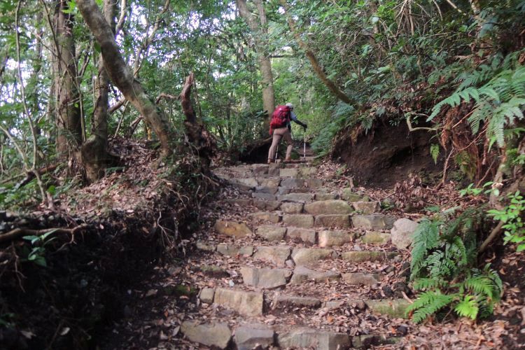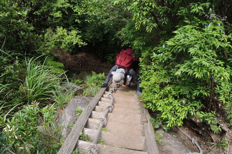 階段を急下降。上ってくる登山者たちは、皆もれなく滝のような汗を流していた。