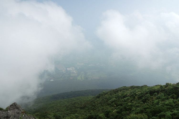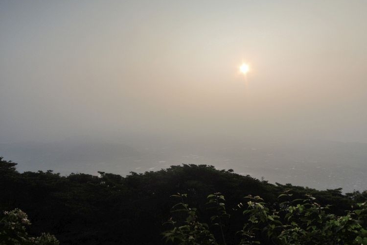 そのうちガスが取れて、麓の街並みが見えるようになり、南東側の鹿児島湾も確認できるようになった。
