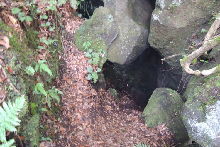 山頂の西側には噴火口跡と思われる樹林に覆われた大きな窪地がある。