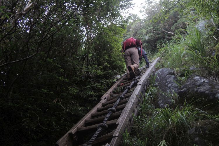岩場にかかった梯子を登る。