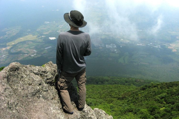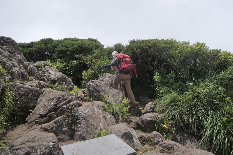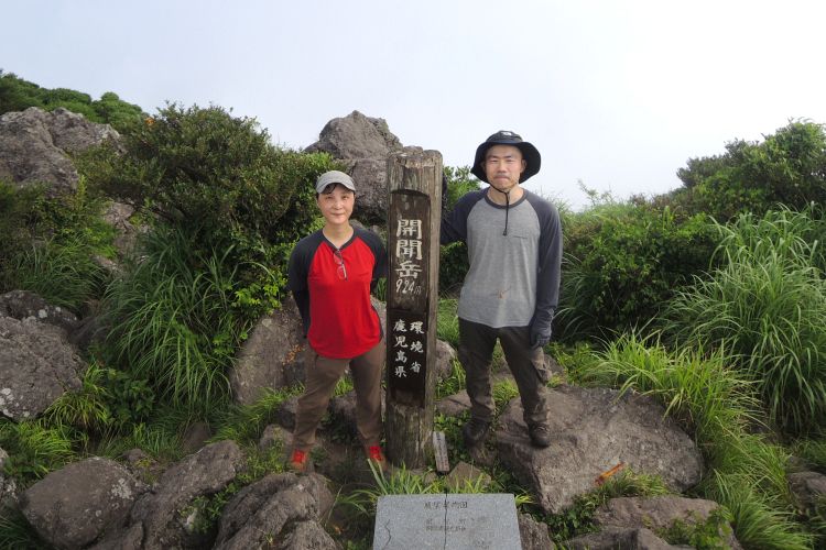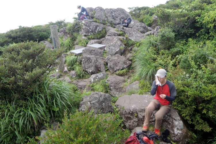 3時半起床、4時過ぎに道の駅 山川港活お海道から、登山口のかいもん山麓ふれあい公園へ移動した。コースは樹林帯の上りが9合目付近まで続くが、風がまったく通らず、体感温度は30度を優に超えていた。上り始めてすぐに滝のような汗をかき、私も嫁も気分が悪くなってしまった。ゆっくり登ることと、水分をこまめに取ることで持ち直したが、序盤は登頂が危ぶまれるほどであった。九州の夏山登山の洗礼を浴びたようにも思えたが、後から登ってきた九州在住の人が「こんな暑い山は初めてだ」と、バケツの水を頭からかぶったような大汗をかいて話していたので、やはり特別に暑い日だったようだ。