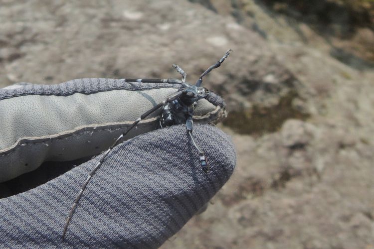 ゴマダラカミキリがいたので捕獲。触角が長くて太く、逃げようとする力が驚くほど強い。