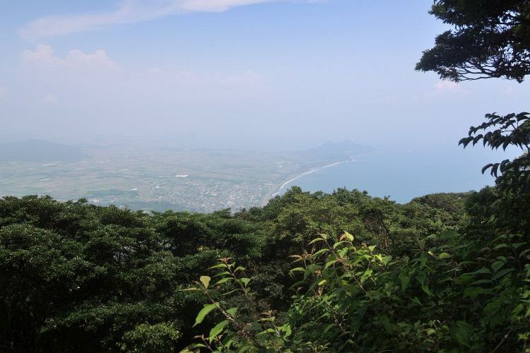 9合目の露岩からカーブを描く枕崎方面の海岸線がよく見えた。