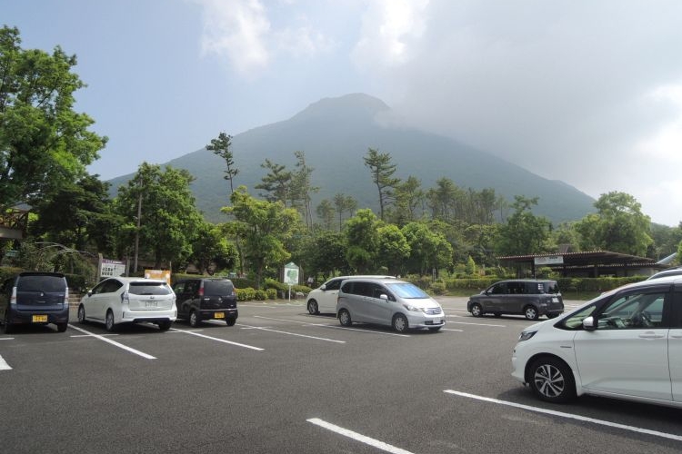 車道に出ると、開聞岳が前方に見えた。