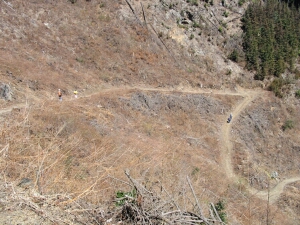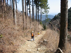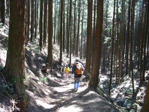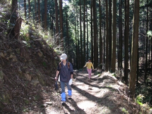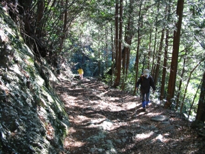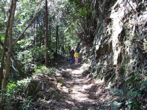 花立松ノ峠から山道に入ったところ。写真とビデオを撮っている間に、嫁と娘はずっと先に行ってしまった。