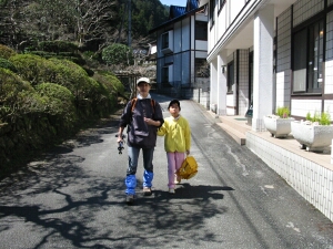 黒山三滝近くの旅館前。本来ならかなり簡単なコースなのだが、駐車場に着く頃にはクタクタだった。