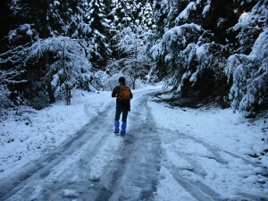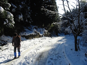 想像以上に雪が多かった。それほど寒さを感じないものの、日陰は凍結していた。