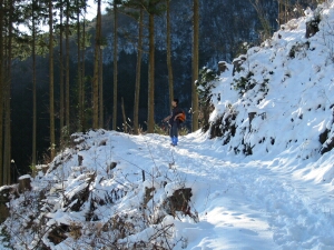 急いで下山。花立松ノ峠を過ぎてからは、ほとんど走って下りた。林道に出たところでやっと追いついた。