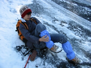 雪と氷のために踏んばりがきかない。ちょっと滑るだけだが意外に体力を消耗させる。