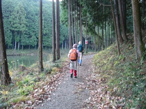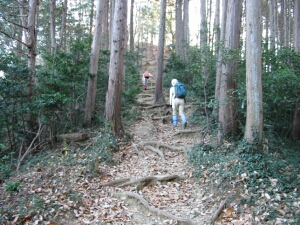 通りがかりに池から水鳥が二羽飛び去った。しばらく行くとジグザグの上りとなる。