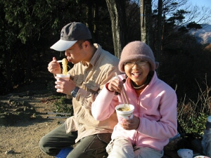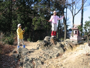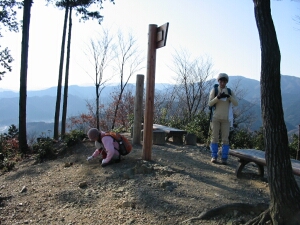5時起床、6時05分出発。現地には7時10分に着いた。家を出たときは寒いと感じたが、日が昇ると12月の下旬とは到底思えないような暖かさだった。去年の同じ時期に来たときは天王池に氷が張っていたが、この日は氷どころか霜柱一つ見当たらなかった。年賀状用に使える山での写真がなかったので、三脚を持ちこんで家族写真を何十枚も写した。山頂は終始我が家だけだったが、下山時には中高年のハイカーと大勢すれちがった。抜群の展望にもかかわらず、1時間足らずで登れてしまうし、他の山との縦走も可能なので人気があるのだろう。