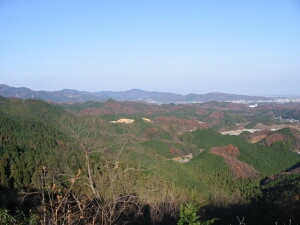 同じく東側から南側。山に行くとき、たびたび通った小川町がよく見えた。