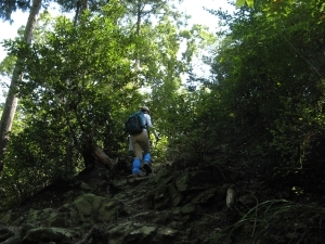 最後の急登。山頂から他のハイカーの話し声が聞こえていた。