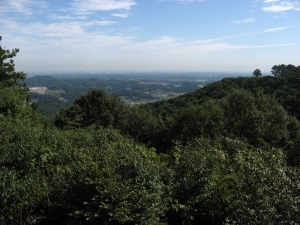 堂平山と笠山。山頂では草木に一部遮られていたが、少し下りた場所からはよく見えた。