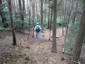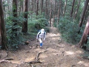 クモがやたらと多く、登山道までクモの巣がのびているのでスティックで除けながら杉林の木陰を歩いた。