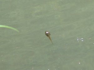 池ではコイや大きなオタマジャクシが悠々と泳いでいた。