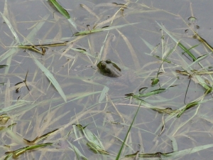 水草のまぎれてじっとしているカエルもたくさんいた。