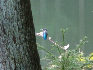 カワセミが山道側の低木に止まったので、杉の背後から近づいた。自然の中で生き物たちに出会うと気分が高揚する。生き物たちのお陰で楽しいハイクになった。
