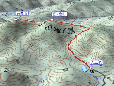 天王池 8:30 ⇒ 8:55 官ノ倉山 9:05 ⇒ 9:15 石尊山 9:30 ⇒ 官ノ倉山 9:40 ⇒ 天王池 10:00