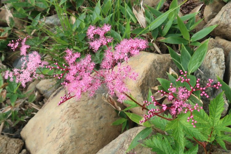バラ科のシモツケソウ。鮮やかなピンク色がコース上のいろんなところで目についた。