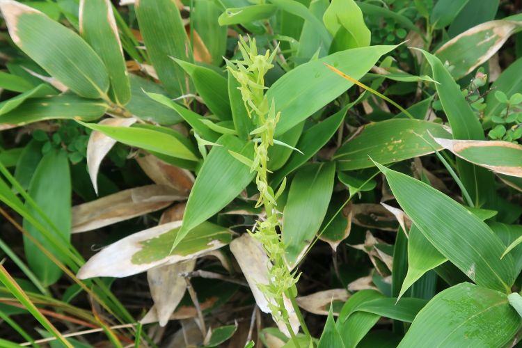 ひっそり咲いていたラン科のホソバノキソチドリ。花を紹介する説明板がなかったら見逃していたかもしれない。