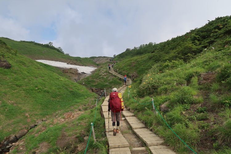 扇雪渓を過ぎると嫁は完全に失速。本人的にはまだ行けるつもりだったらしいが、やはり休憩すべきだった。