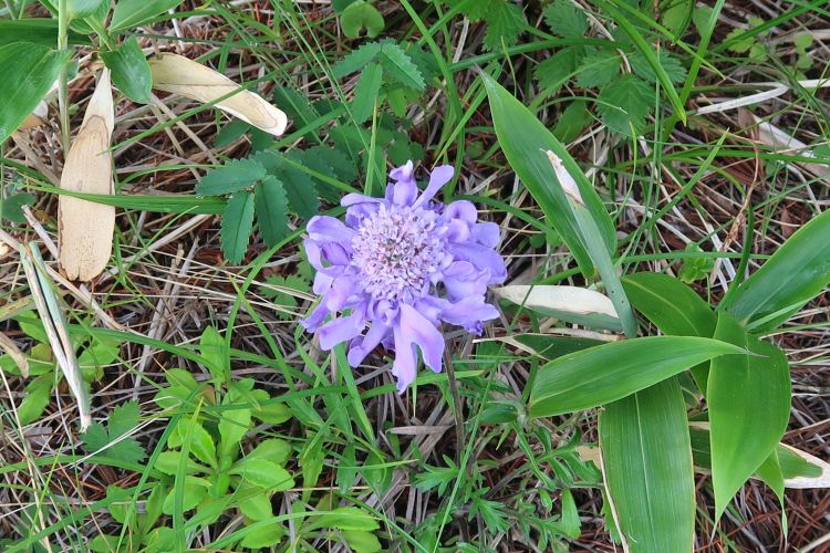 マツムシソウ科のタカネマツムシソウ。数は少なかったが、比較的大きな花なのでよく目立つ。
