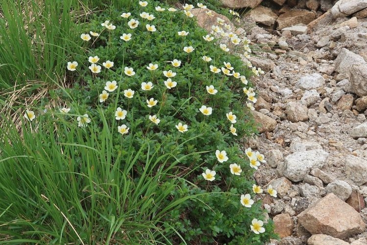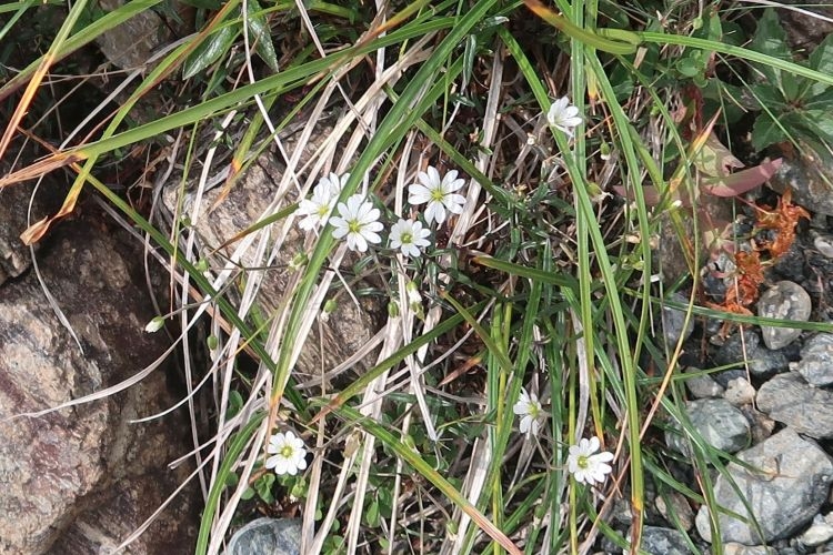 ナデシコ科のクモマミミナグサ。ミミナグサの高山型であるミヤマミミナグサの変種で、北アルプス北部のみに分布する固有種とされる。標示でクモマミミナグサと分かったが、タカネミミナグサとの見分け方がいまひとつはっきりしない。