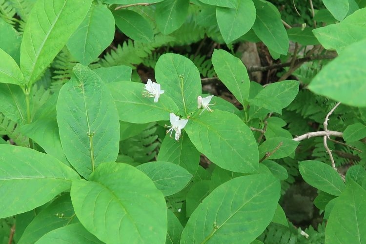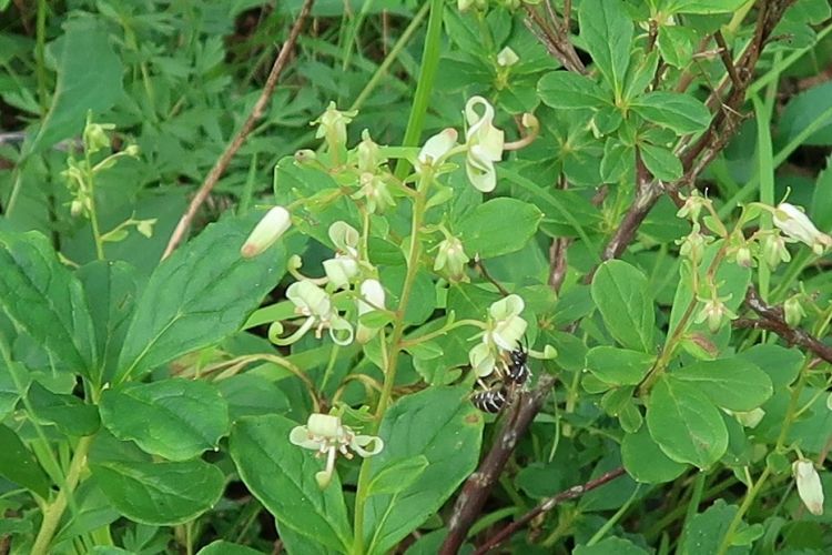 スイカズラ科のオオヒョウタンボク。一瞬、虫がとまっているように見えた。