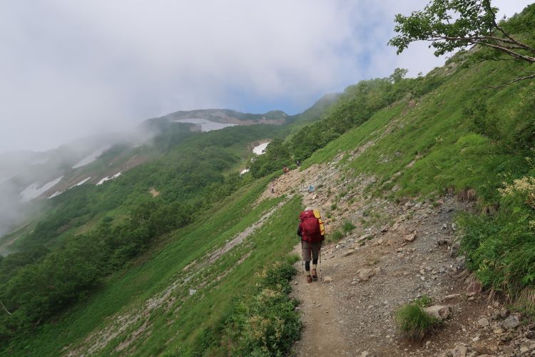 ガスが切れて稜線が見えてきた。まだ距離がありそうなので少しがっかりしたが、気を取り直して歩を進めた。